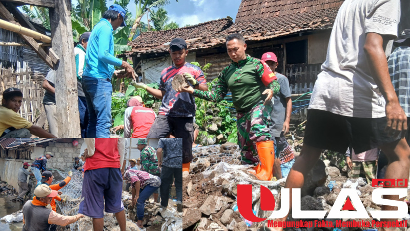 BPBD Bondowoso Bersama Muspika dan Masyarakat Laksanakan Kerja Bakti Pemasangan Bronjong di Desa Wonoboyo