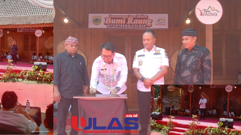 Sekretaris Daerah (Sekda) Bondowoso didampingi Kadisparbudpora, Camat serta Kades saat tandatangi destinasi Desa Budaya (foto dok: Yusi Ulas.co.id)