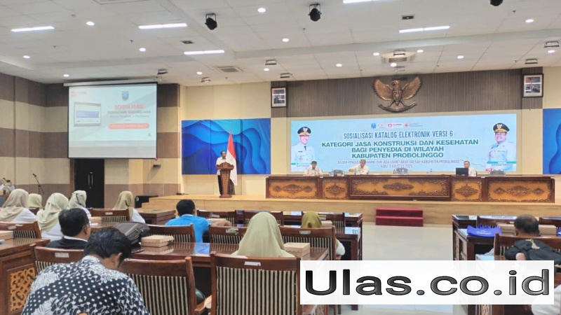 KRAKSAAN, Ulas.co.id – Pemerintah Kabupaten (Pemkab) Probolinggo melalui Bagian Pengadaan Barang dan Jasa menggelar sosialisasi katalog elektronik versi 6 kategori jasa konstruksi dan kesehatan bagi penyedia di wilayah Kabupaten Probolinggo di Auditorium Madakaripura Kantor Bupati Probolinggo, Rabu (6/8/2025).