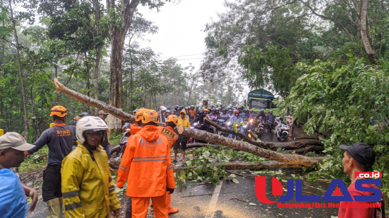 Pengguna Jelan Macet Akibat Angin Kencang Pohon Tumbang di Desa Bandelan Binakal