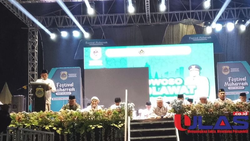 Bondowoso, Ulas.co.id – Dalam rangka penutupan festival Muharram 1447 Hijriyah Pemerintah Kabupaten (Pemkab) Bondowoso Menggelar “Bondowoso Bersholawat Mujahadah Cinta Untuk Bondowoso Berkah”, Sabtu malam (12/7/3025) bertempat di Alun-alun RBA Kironggo.